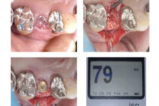 | 治療内容 | 上顎右側5相当部へインプラント埋入と同時にチタンメッシュを用いて自家骨と骨補填材による骨増生術を行った |