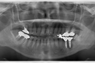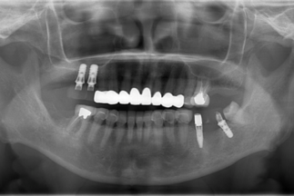| 治療内容 | 上顎2本、下顎2本のインプラント治療による咬合再構成 |